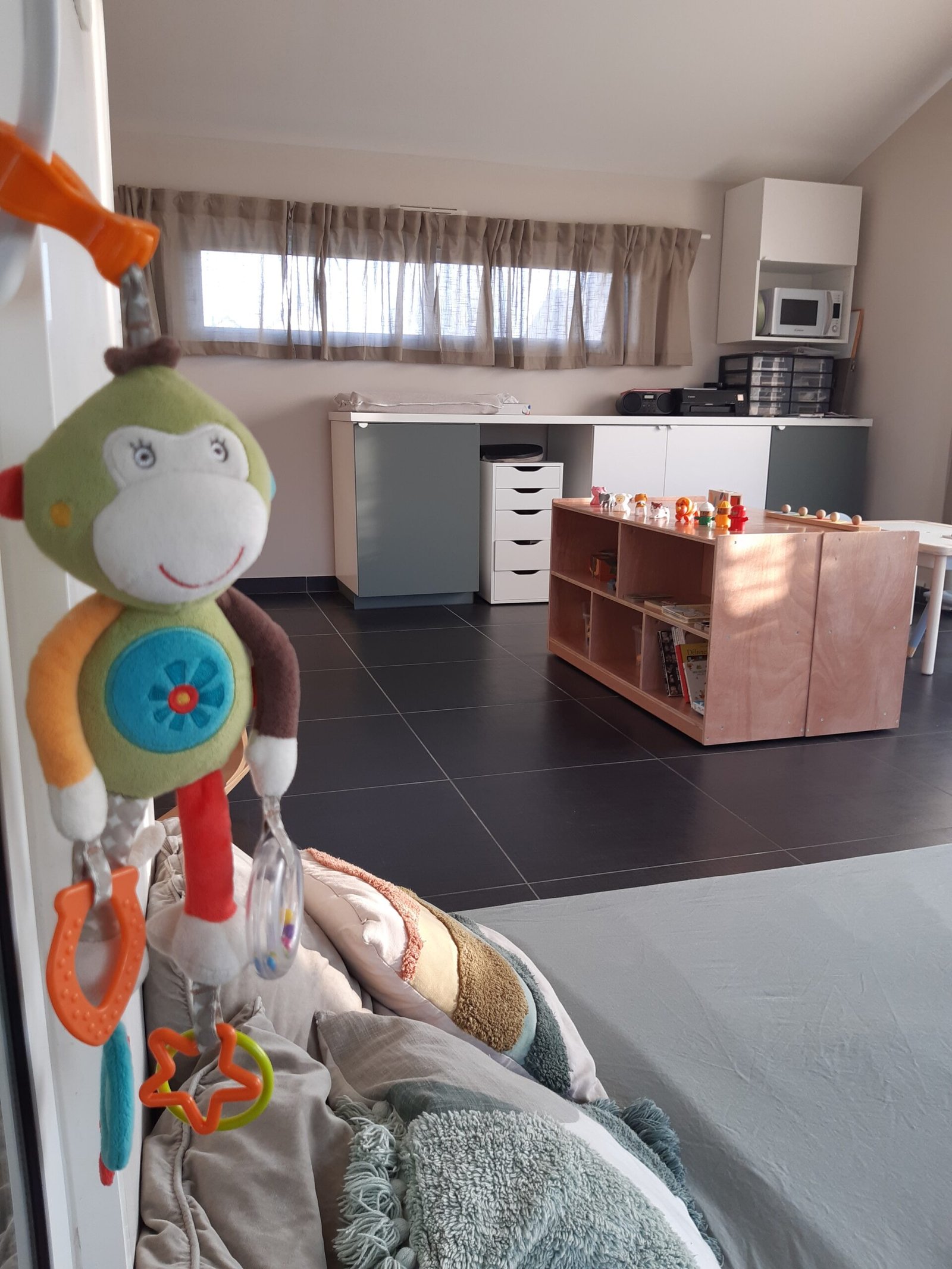 Je dédis près de 40m² de mon logement aux enfants avec une salle de jeu, ainsi qu’une chambre à coucher exclusivement pour eux. Je propose également l’accès à une autre chambre, ainsi qu’à mon salon/salle à manger/cuisine et bien sûr aux toilettes pour les enfants qui le demandent. Dans le jardin, j’ai aménagé une zone de jeu de 45m2 (ombragée l’été) qui nous permettra de profiter de l’extérieur en toute sécurité.